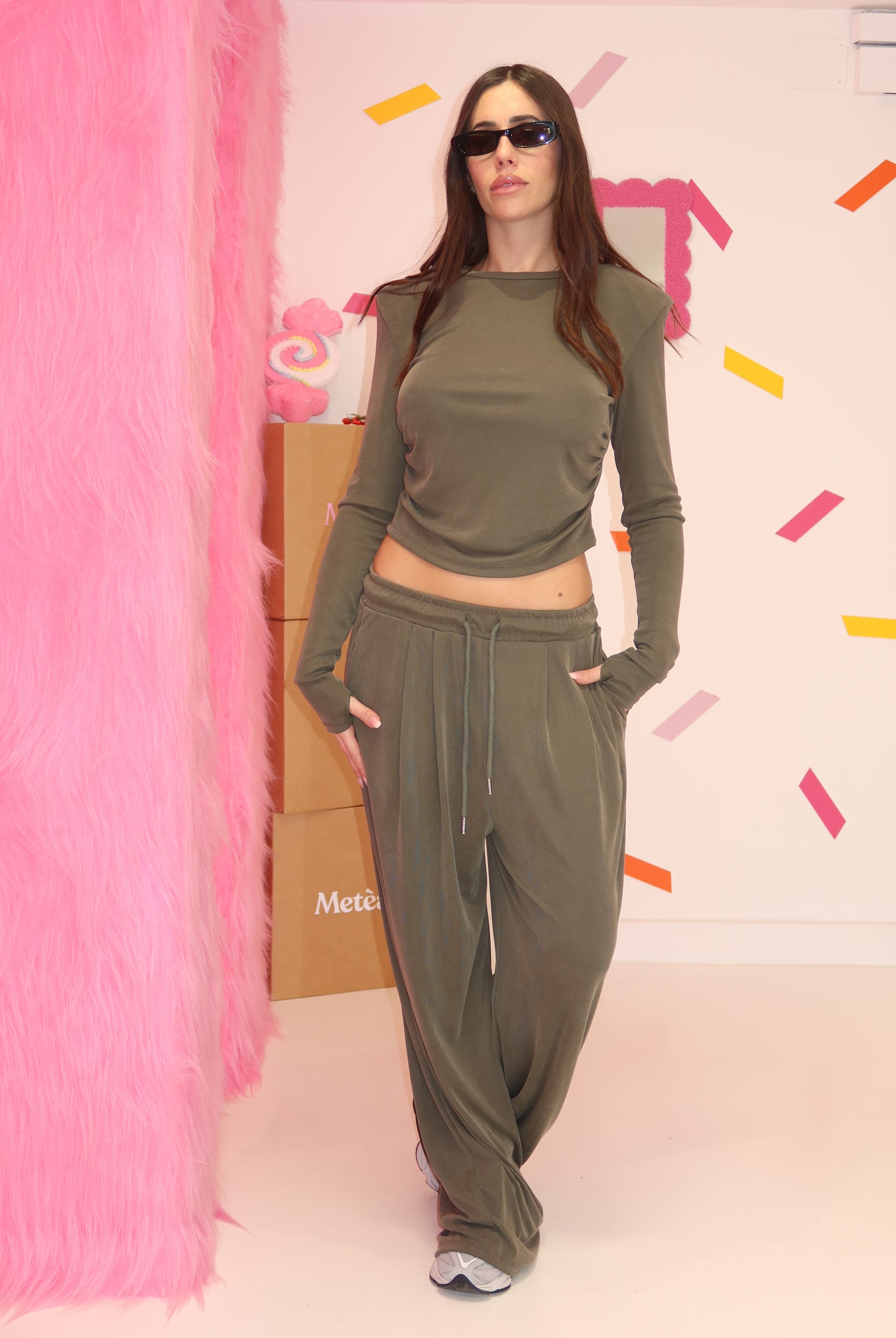 •Pantalone a zampa con molla in vita e coulisse regolabile