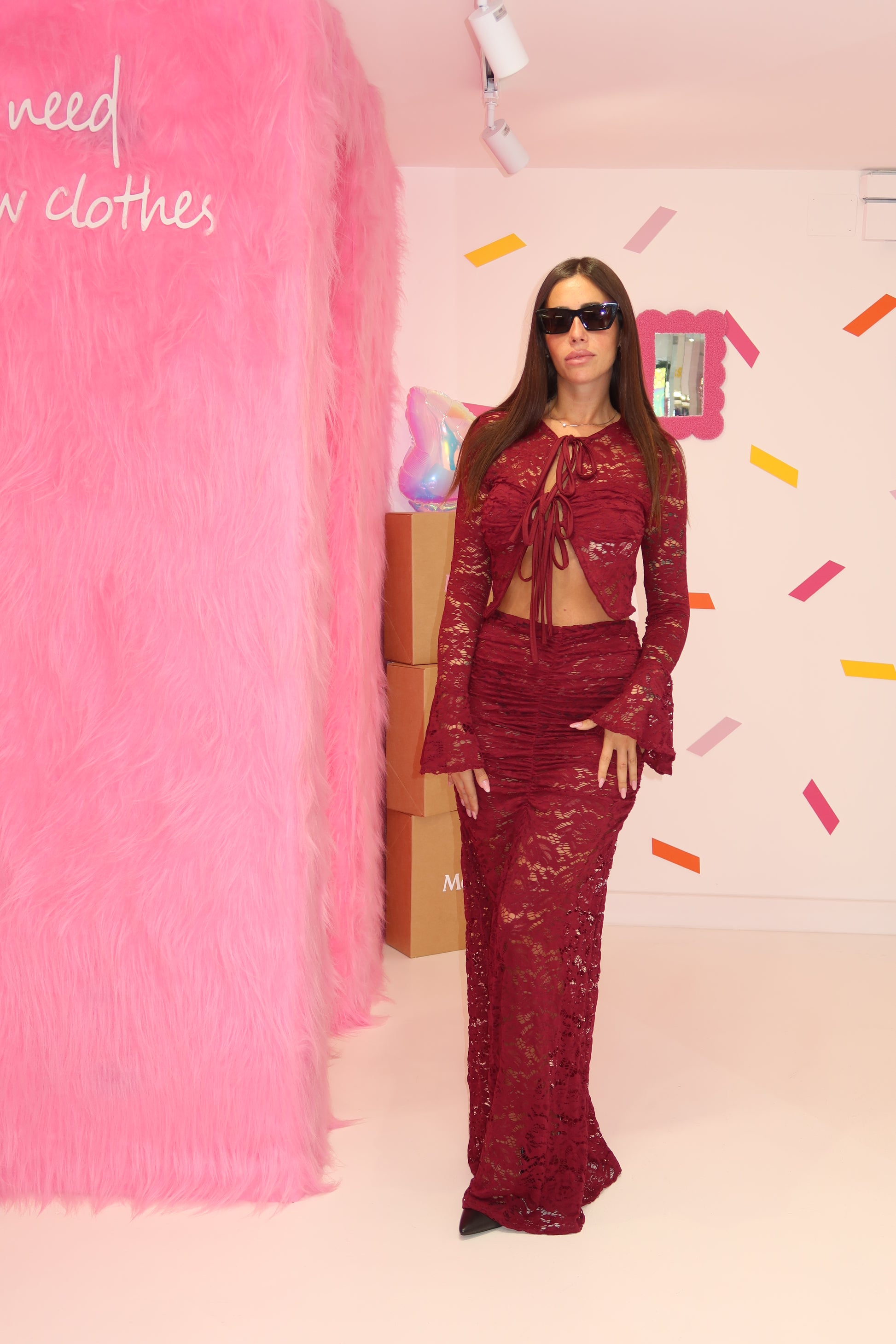 •Gonna e blusa in pizzo bordeaux